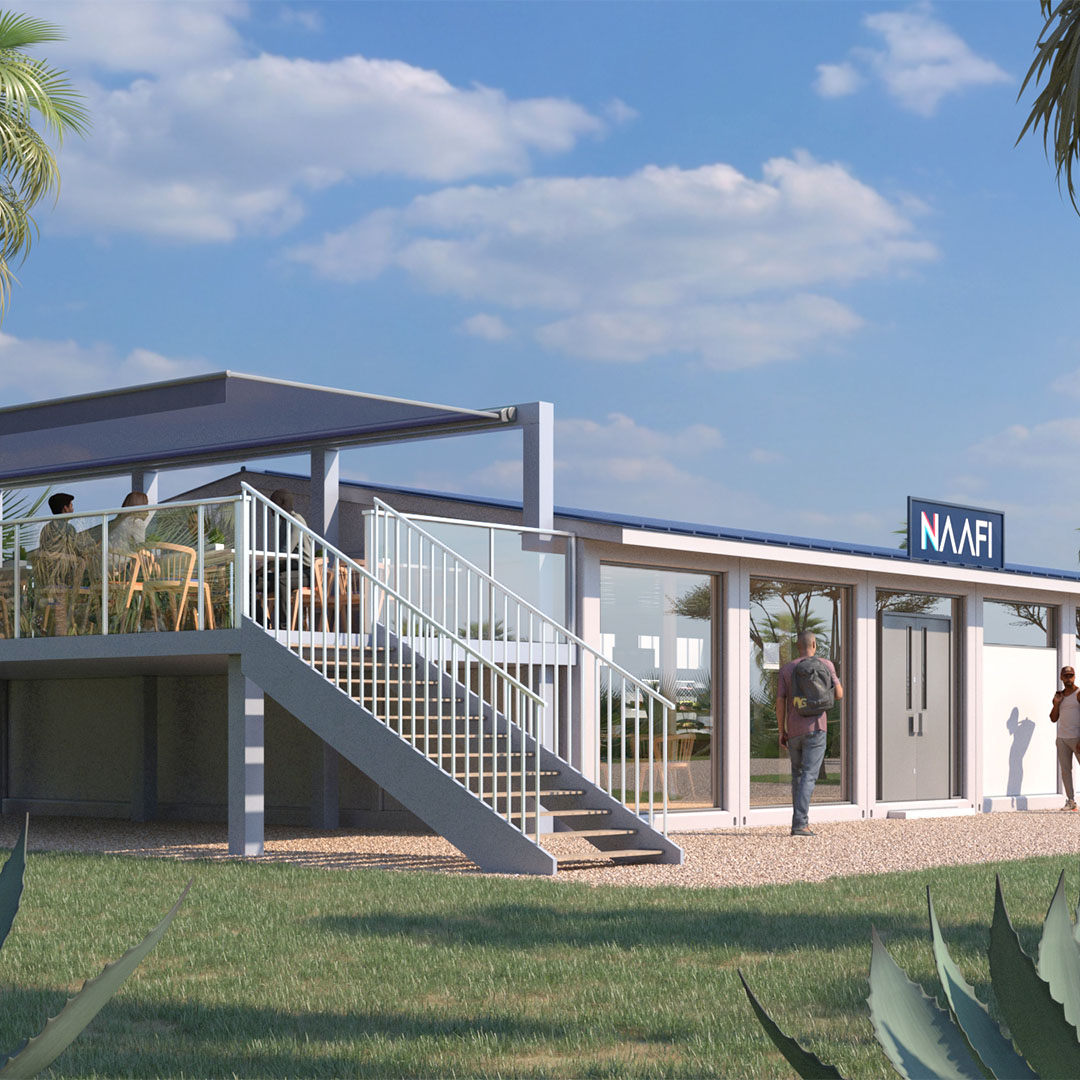 In 2025, our new fleet of sustainable NAAFI Wagons were produced in partnership with one of our long-standing partners, who also produced our modular accommodation pods which are used at several of our locations across the globe.
